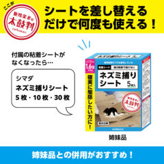- 原則、使用期限は設けておりませんが、粘着面にホコリやゴミが付着すると粘着力が弱まります。状態を見て都度、お客様の方で判断してください。ネズミが捕まった場合は、衛生上、早目に処分してください。