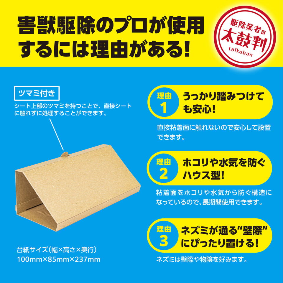 シートを開き、ネズミの通る場所などにたくさん設置してください。