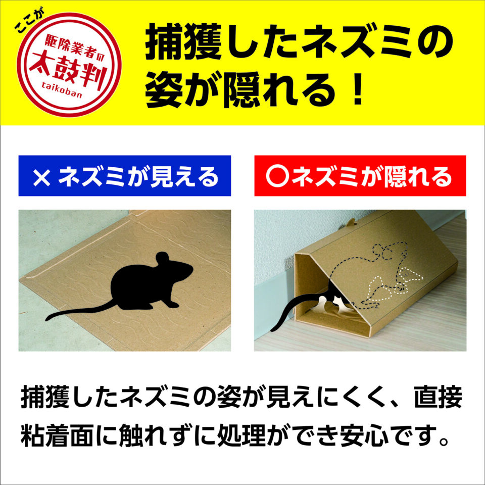- 捕獲したネズミは自治体の廃棄方法に従い、早目に可燃ゴミとして処理してください。