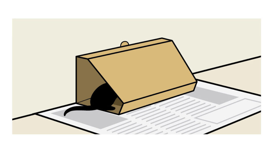 奥深い隙間に差し込み、ネズミを逃さない