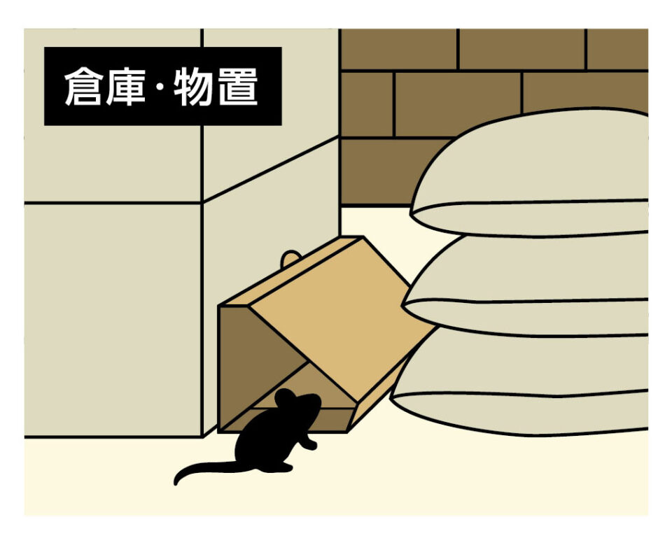 設置前に、ネズミのエサや巣の材料になるものを片付けて空間を綺麗にします。