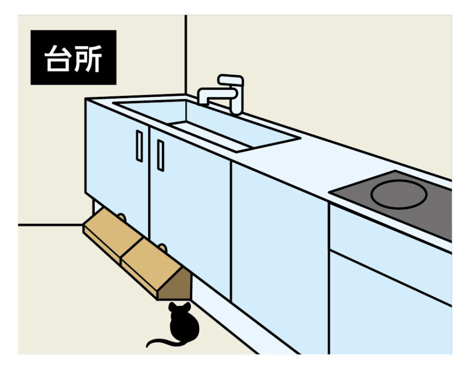 - ネズミの出入口や通り道、ネズミの糞や汚れのあるポイント(ラットサイン)を中心に設置してください。